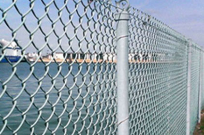 A chain-link fence (also referred to as wire netting, wire-mesh fence, chain-wire fence, cyclone fence, hurricane fence, or diamond-mesh fence) is a type of woven fence usually made from galvanized wire. The wires run vertically and are bent into a zigzag pattern so that each "zig" hooks with the wire immediately on one side and each "zag" with the wire immediately on the other. This forms the characteristic diamond pattern seen in this type of fence.