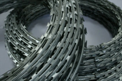 Razor Wire is a central stand of high tensile wire , and a steel tape punched into a shape with barbs. The steel tape is cold cramped tightly to the wire. Razor Wire is manufactured with galvanized tape (Zinc Coating ranging from 120 gsm to 275 gsm). And Galvanized Core wire (Diameter: 2.5mm) with Zinc coating 90 gsm to 275 gsm. For more critical Razor Wire applications, stainless steel tape and stainless steel core wire is used. It is most often used to form military-style wire obstacles. It is also used in non-military settings, such as when used in prison barriers, detention camps, riot control, or at the Border.