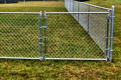 A chain-link fence (also referred to as wire netting, wire-mesh fence, chain-wire fence, cyclone fence, hurricane fence, or diamond-mesh fence) is a type of woven fence usually made from galvanized wire. The wires run vertically and are bent into a zigzag pattern so that each "zig" hooks with the wire immediately on one side and each "zag" with the wire immediately on the other. This forms the characteristic diamond pattern seen in this type of fence.